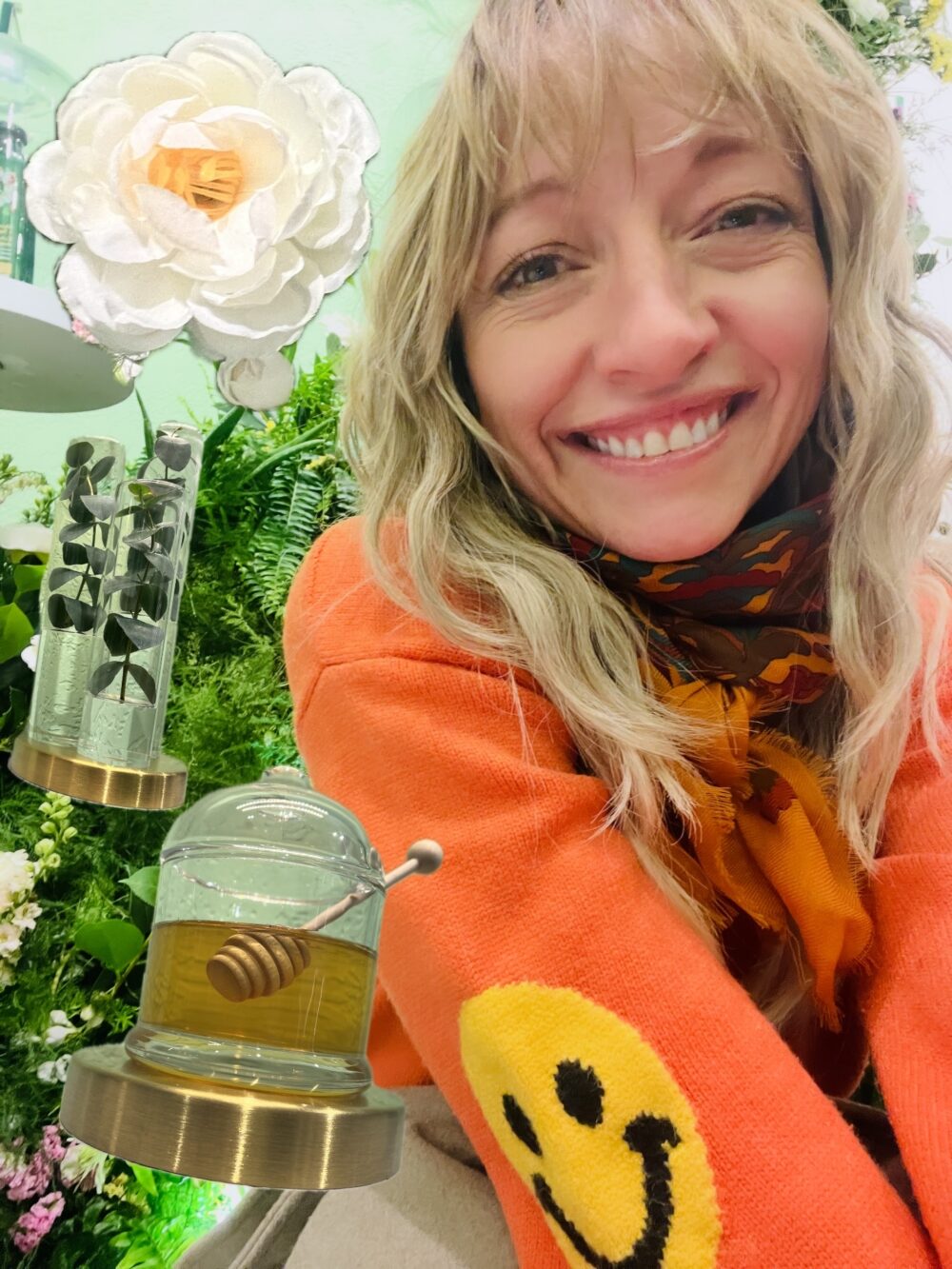 Inside: greenery, flowers, fresh scents