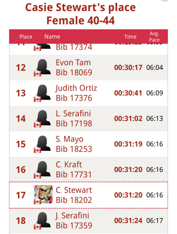 RACE TOP 20 TORONTO MARATHON
